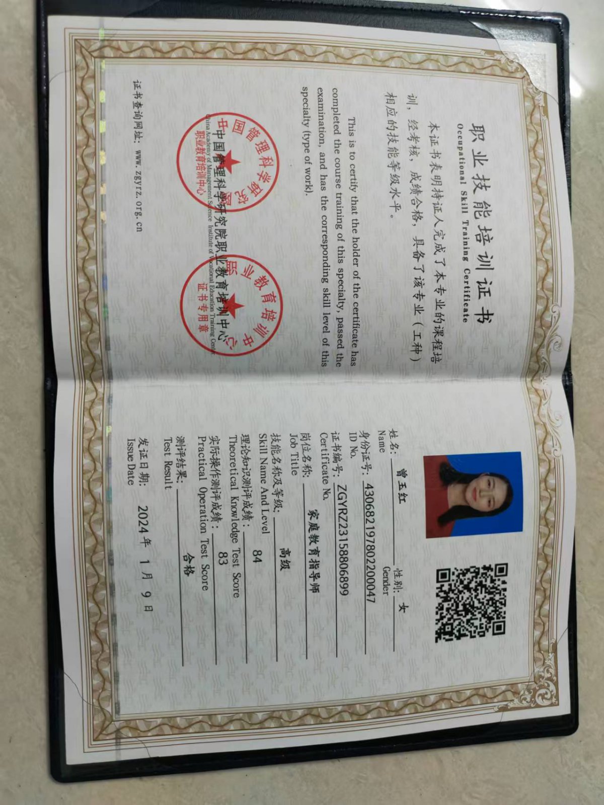 曾玉红,女,1978年出生,大学文化,获中科院心理咨询师证、中管院高级家庭教育师证、人社部三级心理咨询师证。